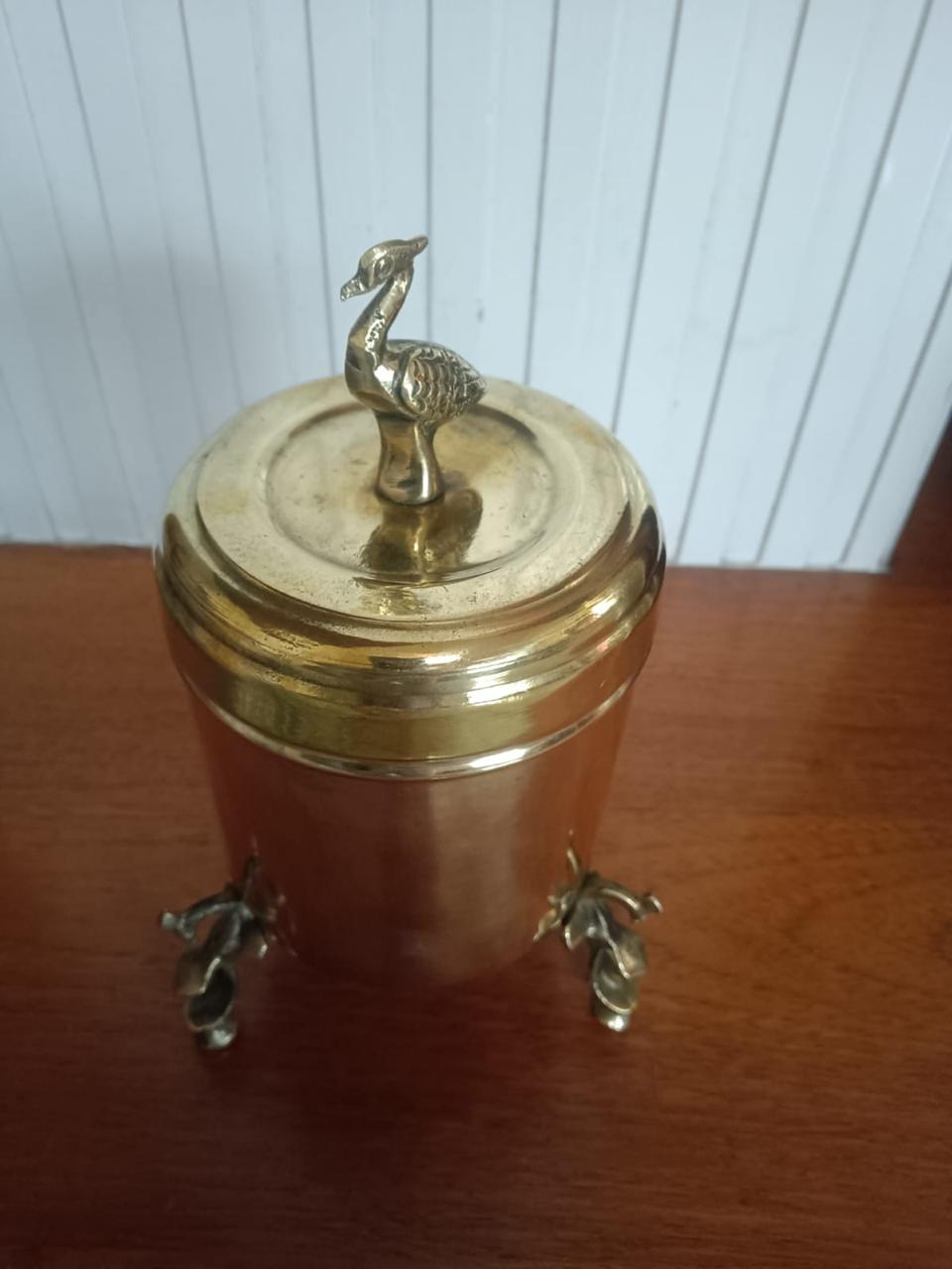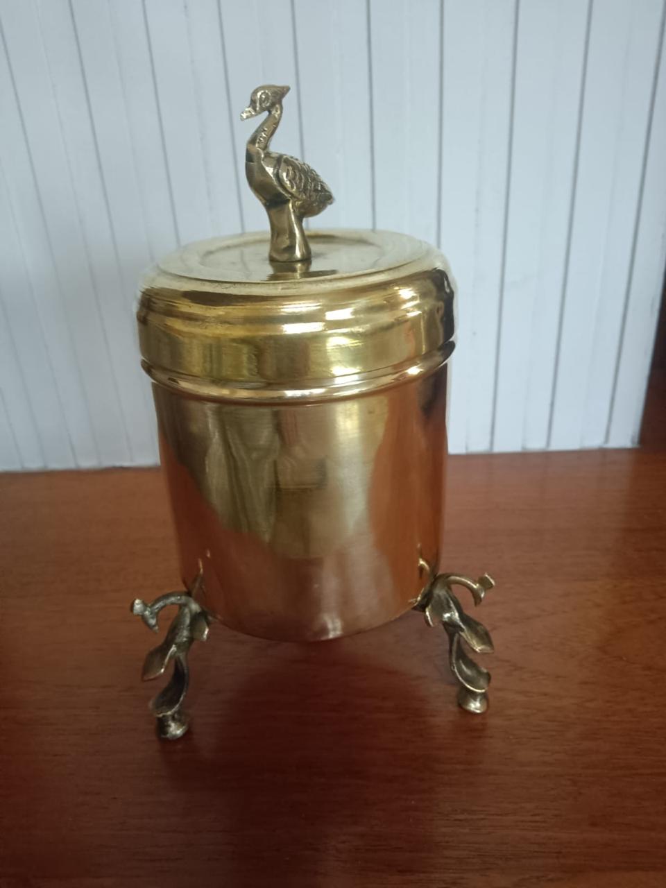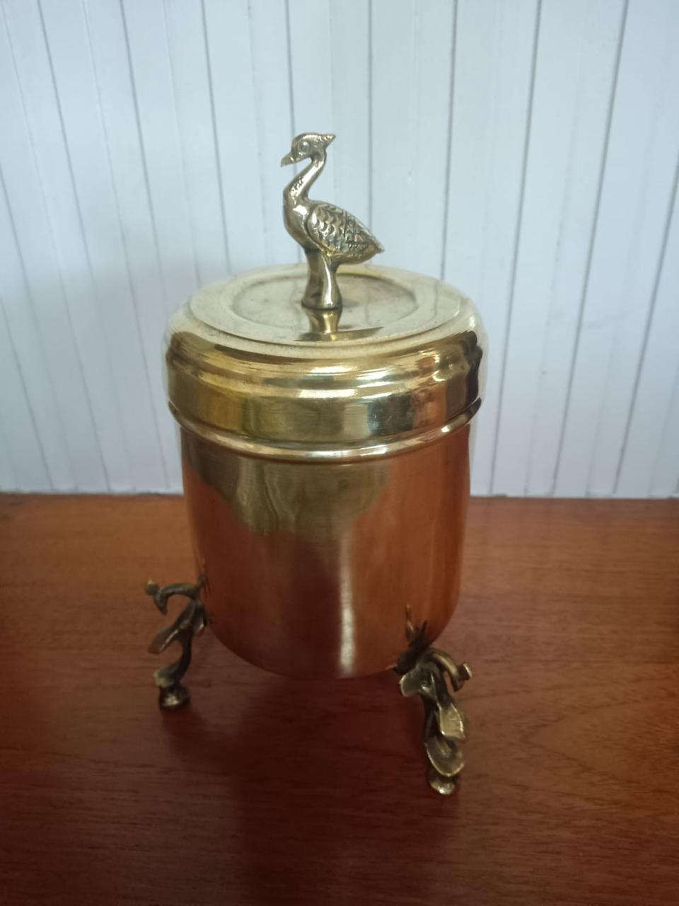 Large bird-shaped brass box with legs that elaborate detailing. Perfect statement piece for your living room.