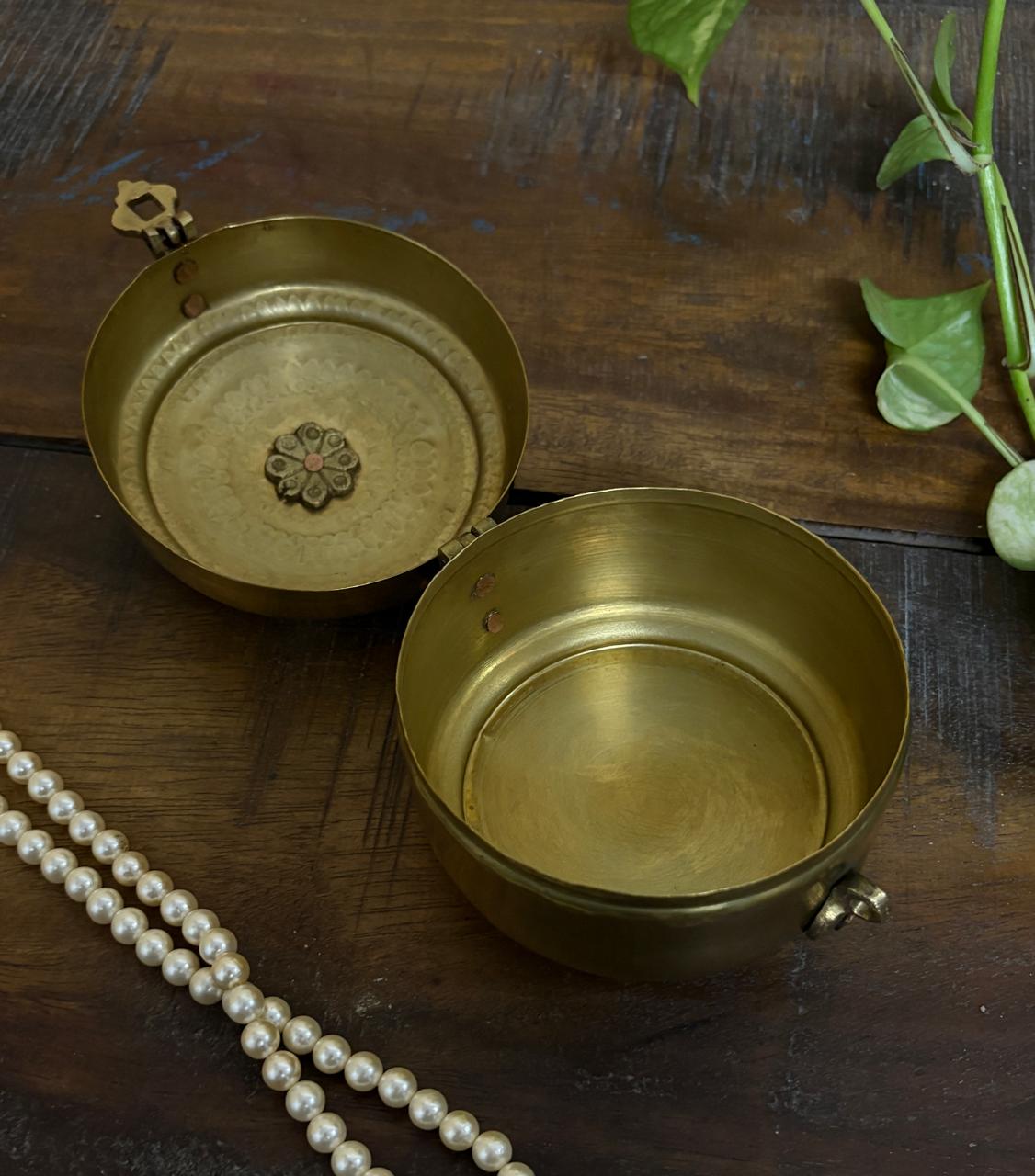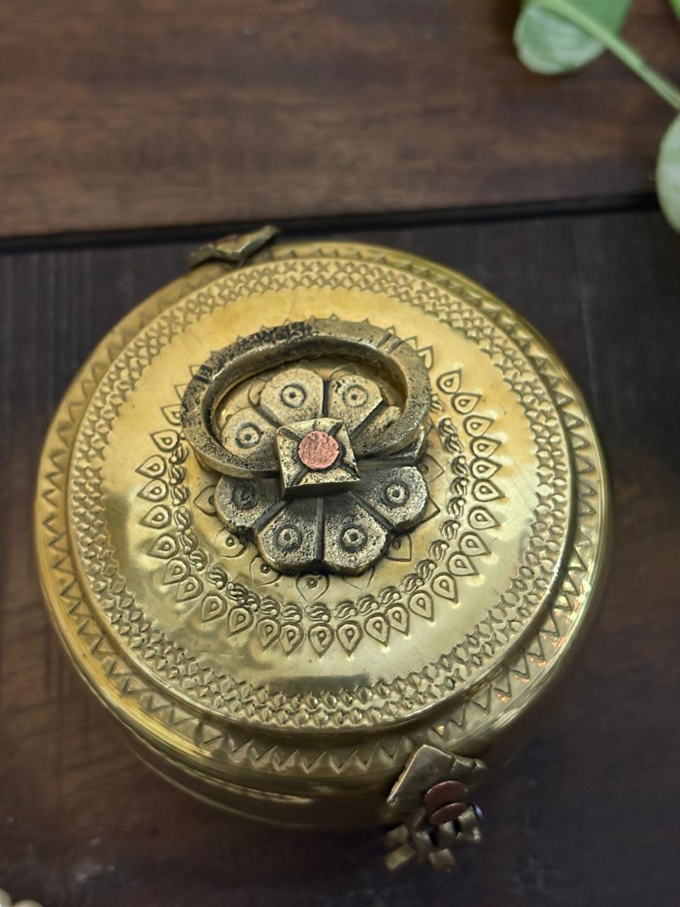 Exquisitely crafted antique brass box with intricate designs. Perfect for storing jewelry and small treasures.
