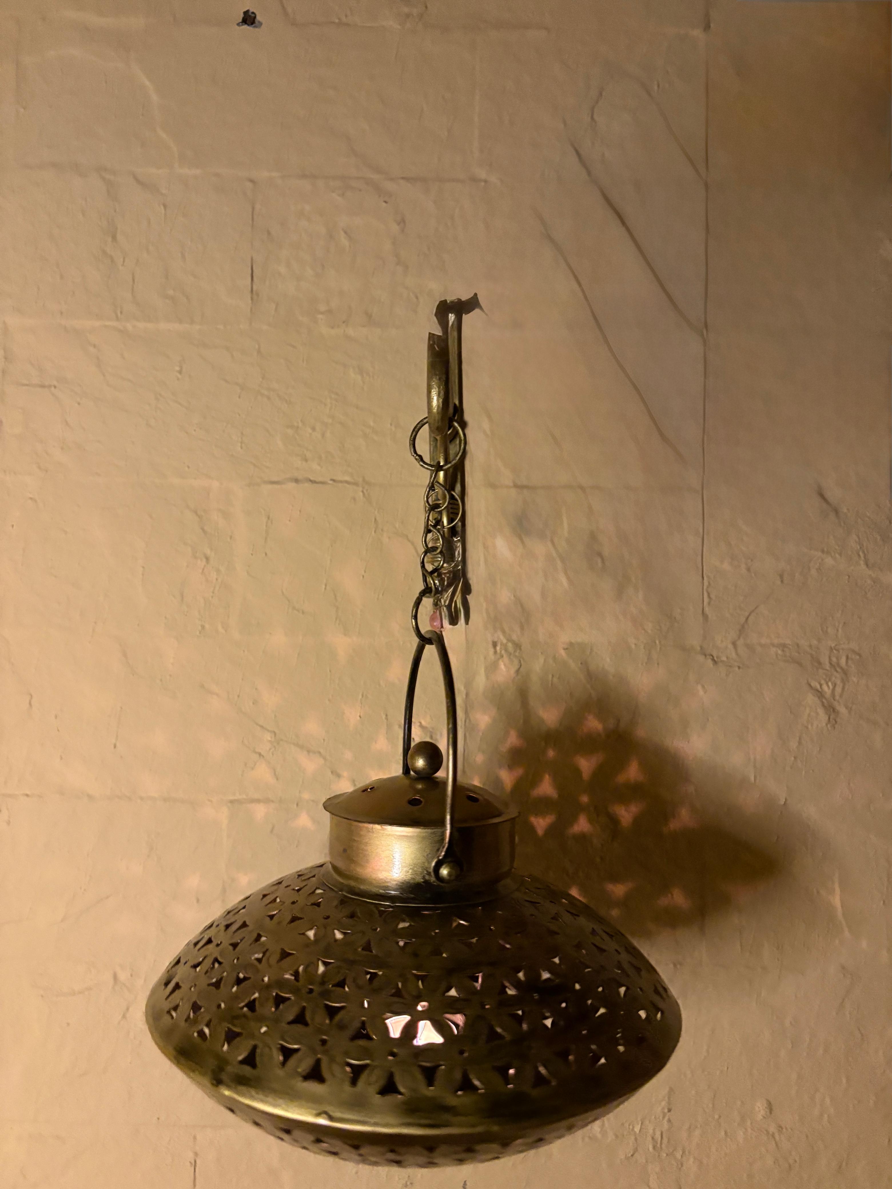 Traditional handi-style iron lamp with authentic design. Creates beautiful ambient lighting.
