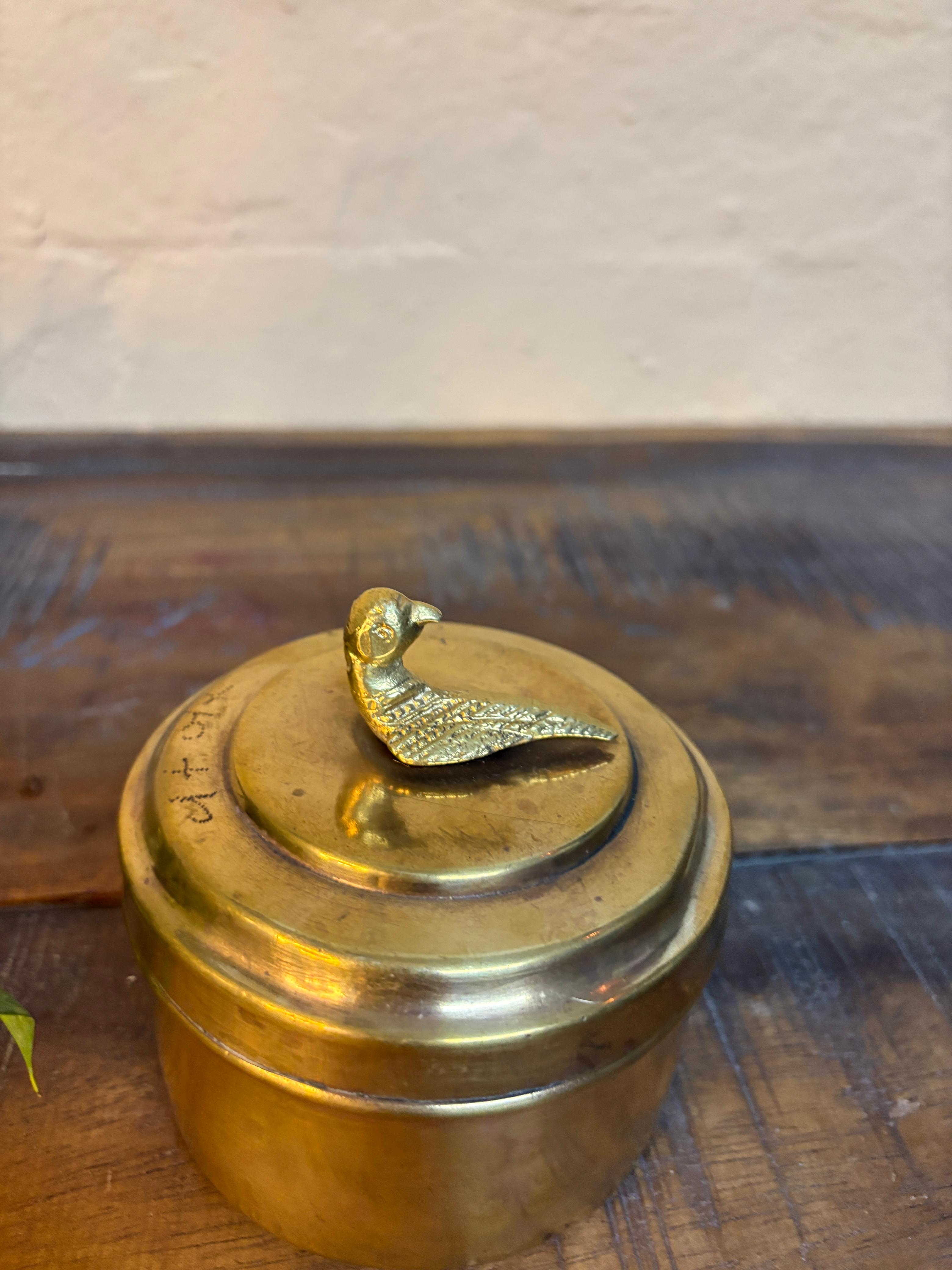 Medium-sized bird brass box with beautiful craftsmanship. Great for storage and decoration.