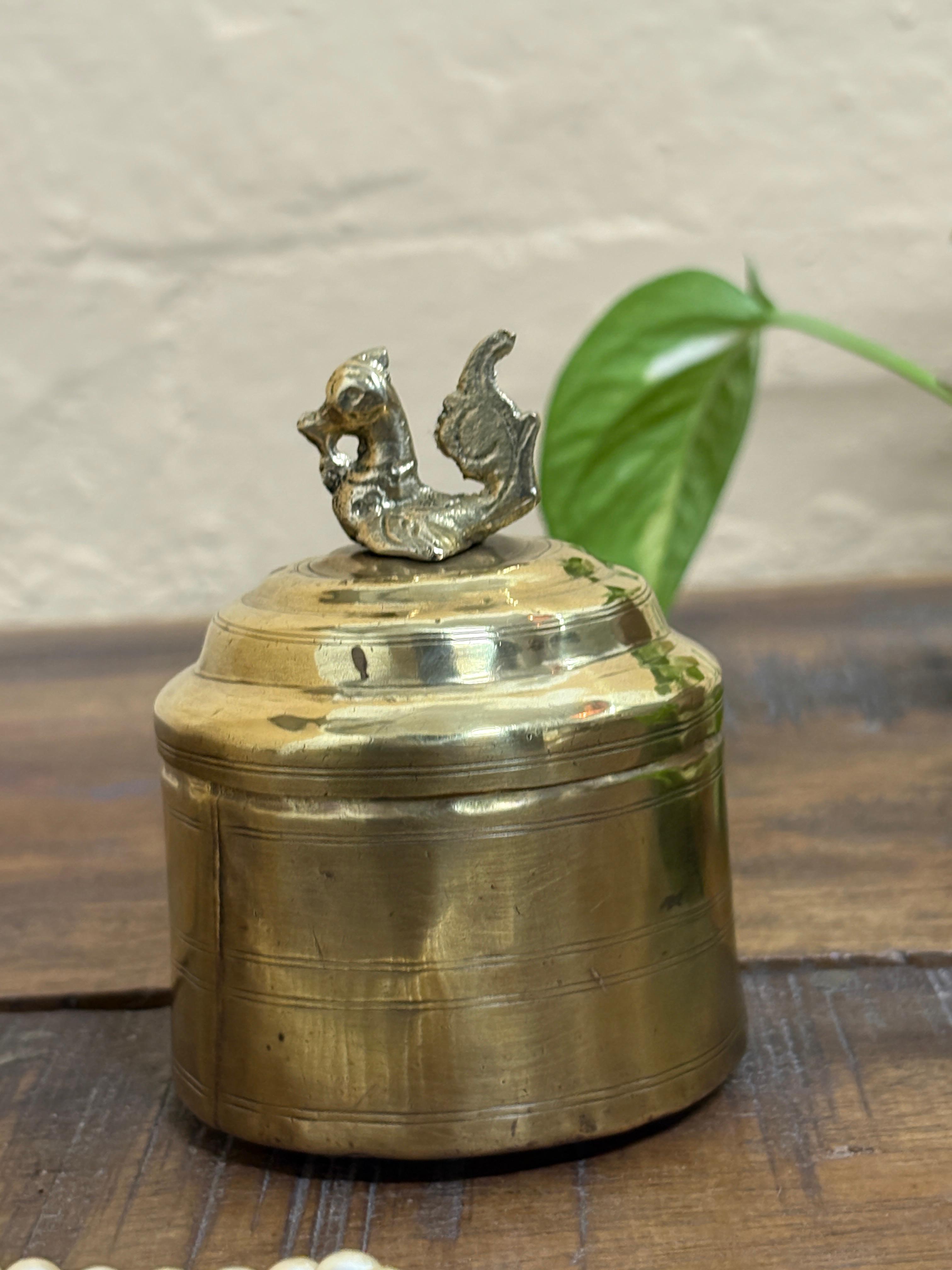 Charming small bird-shaped brass box with intricate detailing. Perfect decorative piece for your home.