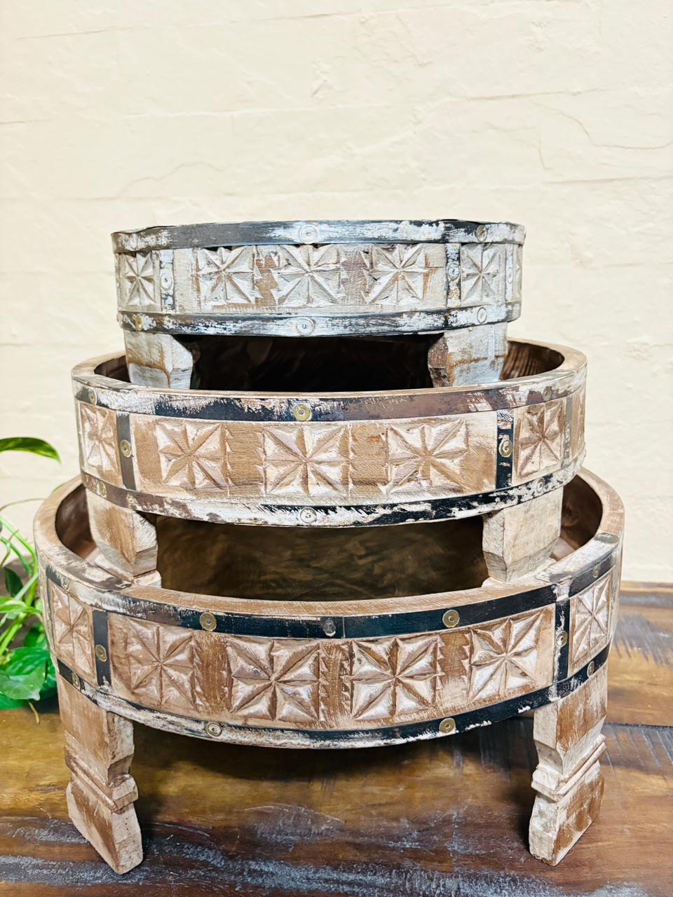 Traditional small wooden grinder (Chakki). A perfect handcrafted piece for ethnic home decor.